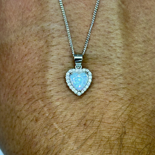 Horology Collezione presents This beautiful 18 inch 45cm CZ Diamond and White Opal Heart Necklace , it is crafted from 925 Sterling Silver and feature a locking clasp fully hallmarked. The Heart design makes it stand out around the neck and chest, adding a touch of elegance and sophistication to any outfit. This Necklace is perfect for any jewellery lover looking to add a bit of class to their collection. The silver colour and design give this chain a superior feel, making it a great choice for both everyday wear and special occasions.