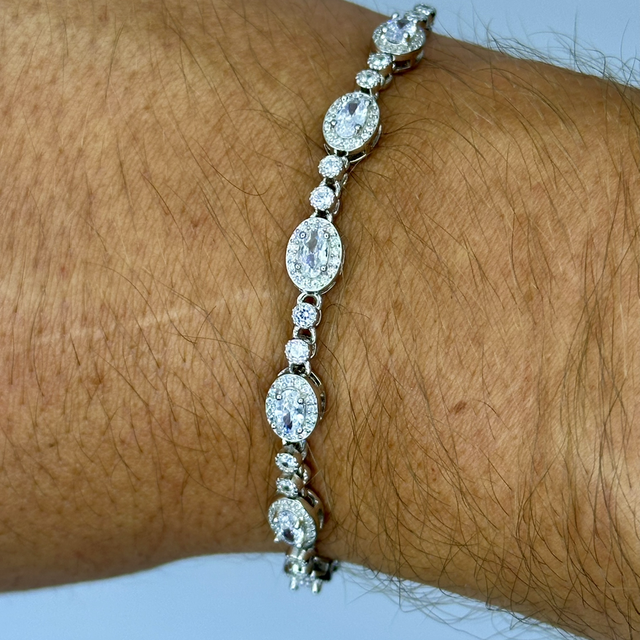 Horology Collezione presents This beautiful 7.5inch 19cm CZ Diamond Oval Clear bracelet, they are crafted from 925 Sterling Silver and feature a locking clasp fully hallmarked. The Oval diamond design makes it stand out around the wrist, adding a touch of elegance and sophistication to any outfit. This bracelet is perfect for any jewellery lover looking to add a bit of class and a lot of sparkle to their collection. The silver colour and design give this bracelet a superior feel, making it a great choice for both everyday wear and special occasions.